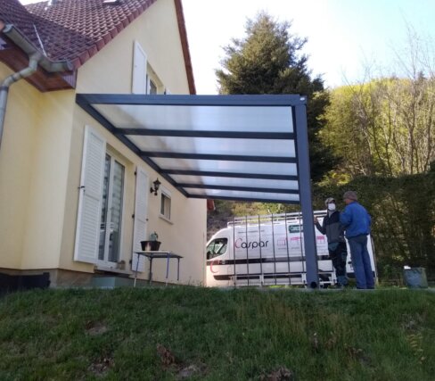 Avez-vous des exemples de pergolas avec toiture polycarbonate installées par Caspar ?